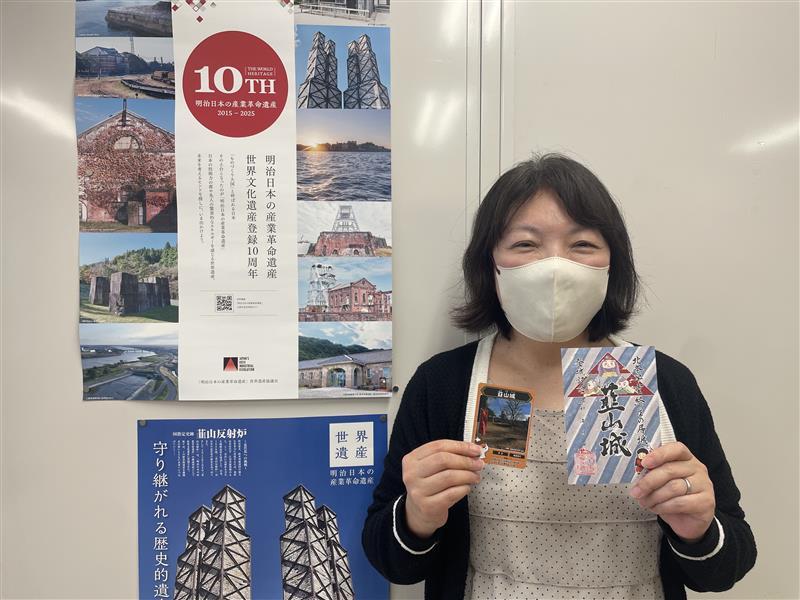 「韮山城(にらやまじょう)」の「お城トレカ」の販売が3月6日、伊豆長岡駅前観光案内所(伊豆の国市南條)で始まった。