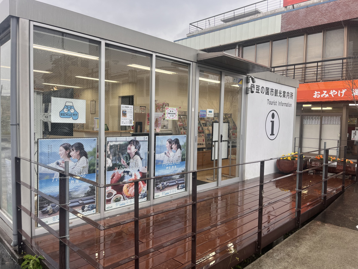 「お城トレカ」を販売する伊豆長岡駅前観光案内所
