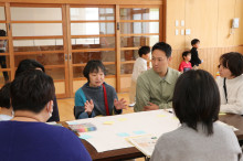「子育てワークショップ」が3月26日、共和幼稚園(伊豆の国市中)で開かれた。伊豆の国市が子育て支援や子どもの居場所づくりについて考える場として開いたもので、大人32人が参加し、うち、10人以上が保育園や幼稚園の教諭らだった。