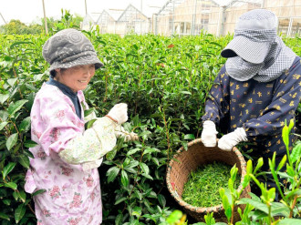 蔵屋鳴沢専務の稲村秀宣さんは「昭和50年ごろから行っている体験。伝統的な茶摘み衣装を着て、無心で新芽を摘む感触を楽しんでいただける。摘んだ生葉は持ち帰り、『お茶の葉の天ぷら』にして味わうのがお薦め」と話す。