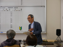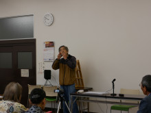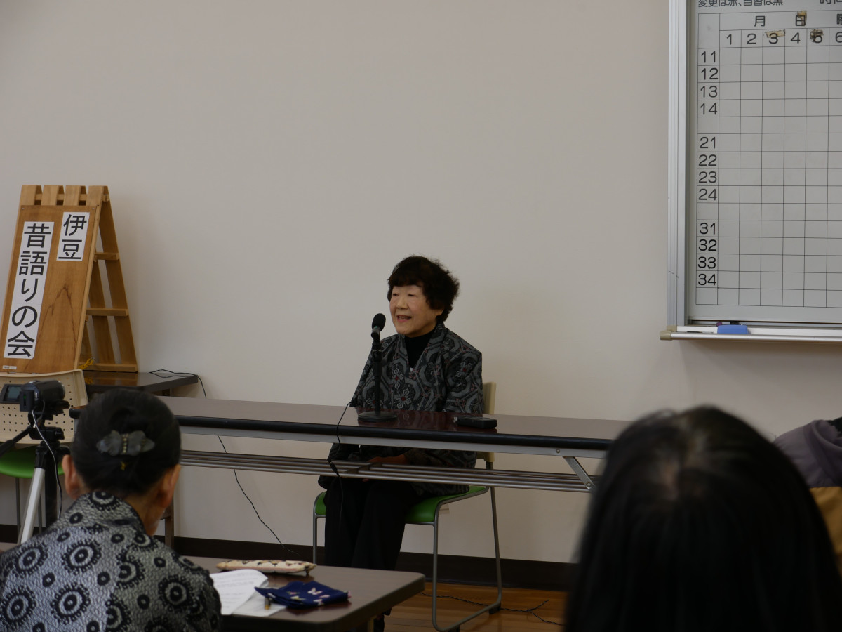 後半は昔語りの時間を設け、「刈萱」「戦争に行った天狗(てんぐ)」「金太郎の母」を会員が口演した。「戦争に行った天狗」では伊豆の方言を交えた語りもあり、最後は会長の鈴木暹さんが「関東大震災」を実話として語った。