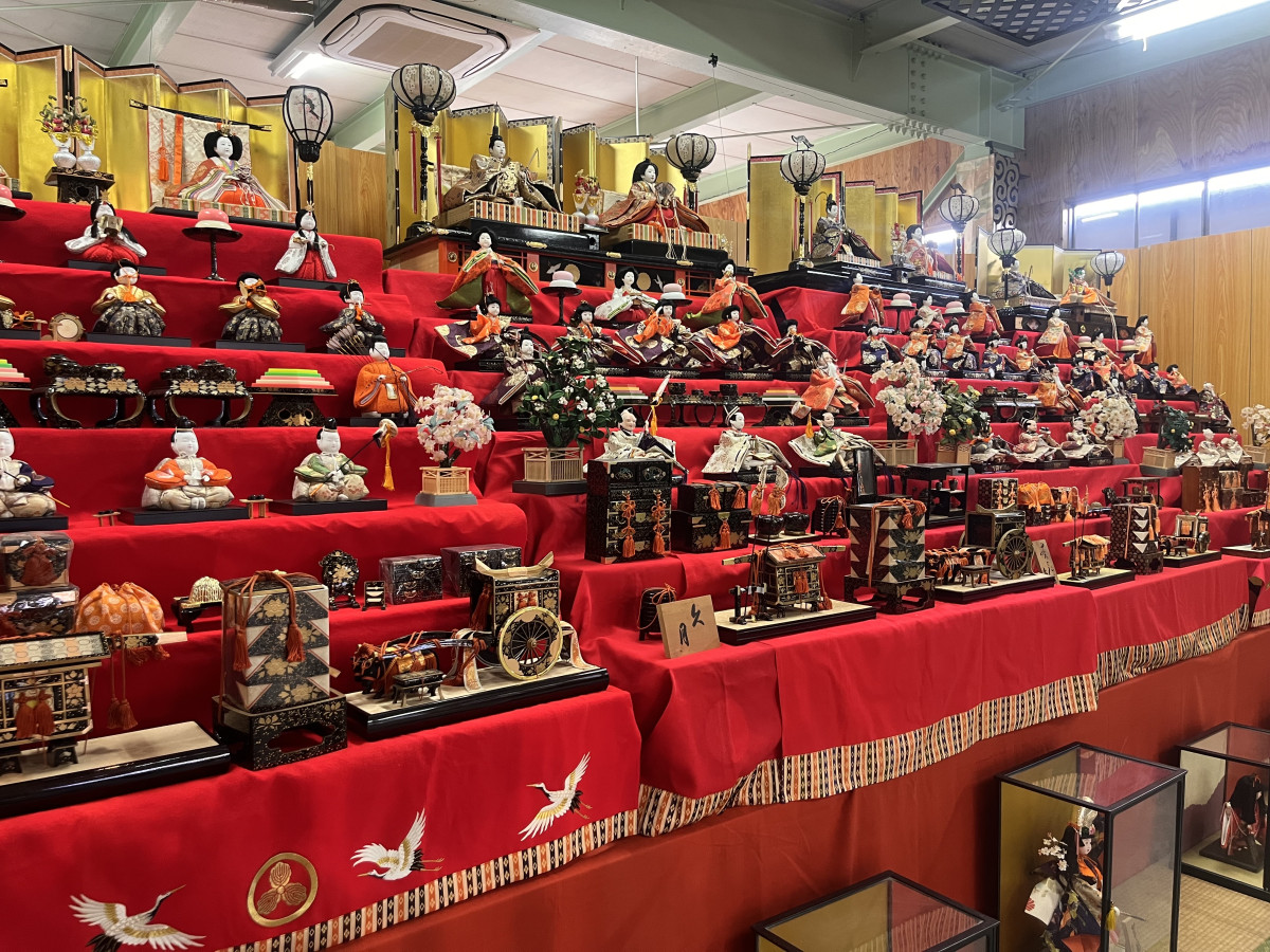 伊豆の国の「蔵屋鳴沢」(伊豆の国市中)の特別展示場(つるし飾り雛反射炉館)で現在、「つるし飾り雛」の展示販売が行われている。