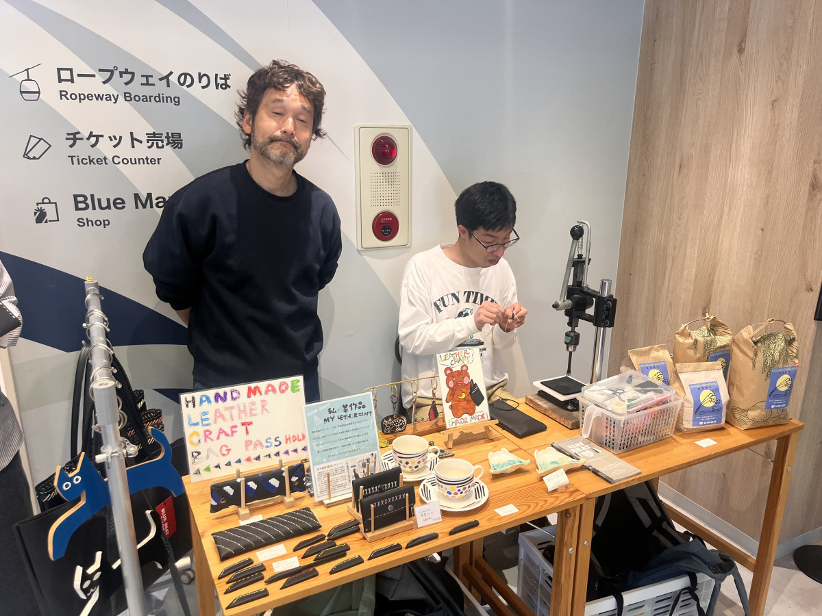 本革の端材を活用した商品を並べる「ブルービート」